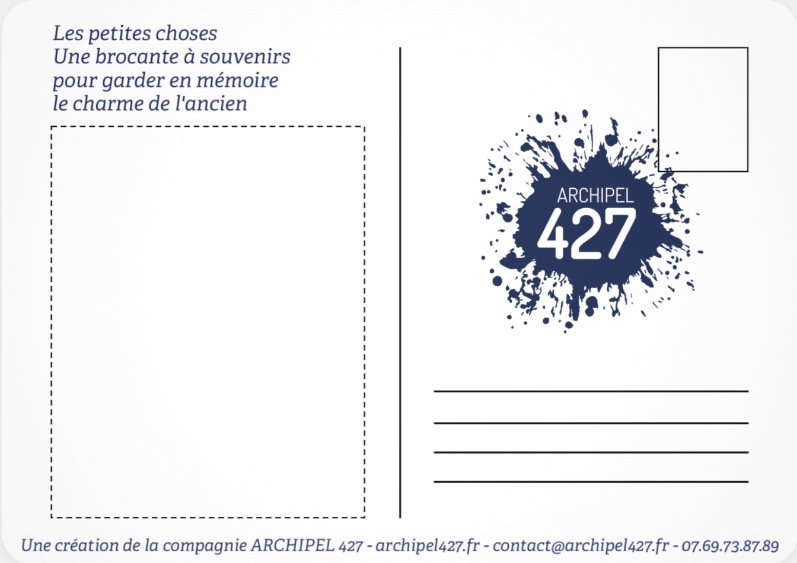 Impossible de faire un spectacle sous forme de brocante sans l’assortir d’une carte postale, rien que pour le plaisir de la regarder vieillir. Pour la petite anecdote, cette image est une diapositive appartement à mes grands-parents naturellement usée par le temps, retrouvée et numérisée par ma maman en 2023.