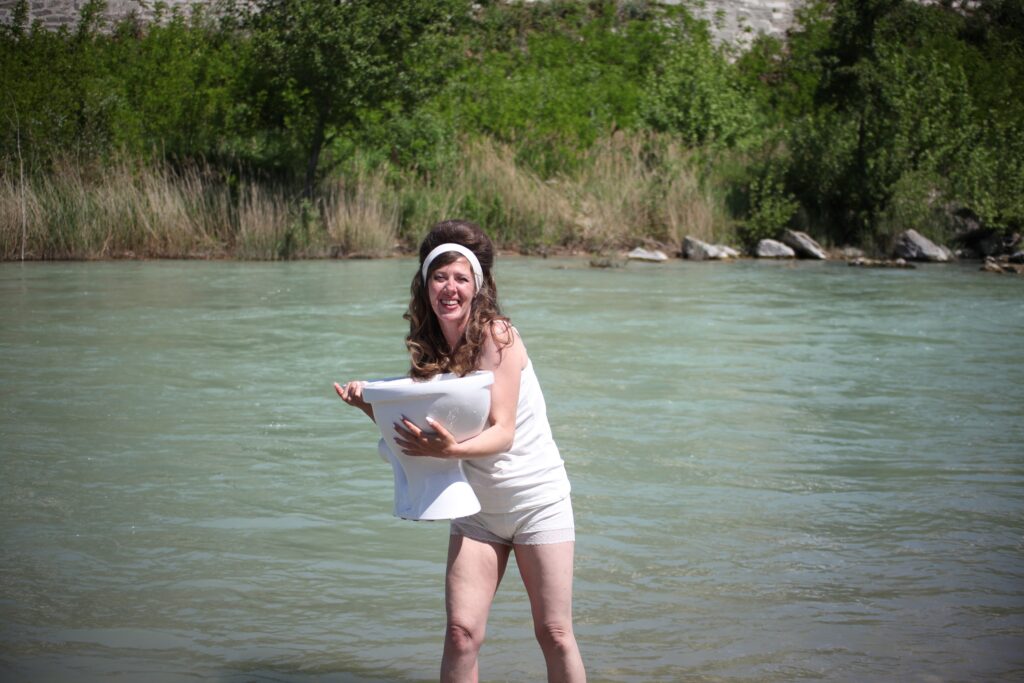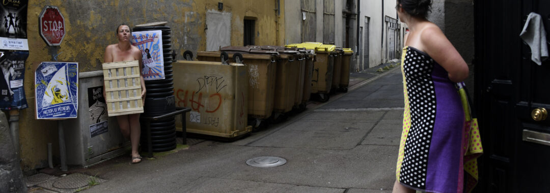 Léna et Marjorie se retrouvent pour partir en virée et se dépasser. L’objectif : traverser un quartier avec une serviette pour deux. Rien d’autre. Traverser la ville vise à mettre en lumière l’amitié et valoriser la place qui lui est conférée dans notre société. Prendre le temps de célébrer cette relation par le corps et la voix, c’est aussi questionner la place du corps féminin dans l’espace public. Dans la lignée du célèbre “cap ou pas cap”, cette déambulation tend en toile de fond à décaler l’image de la femme afin de sortir des rapports de séduction et retrouver une forme de liberté dans la contrainte.