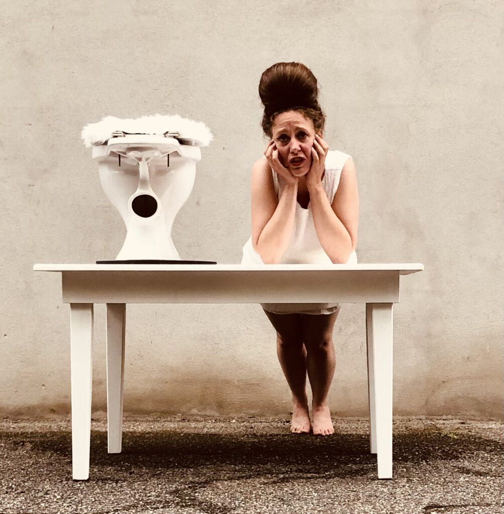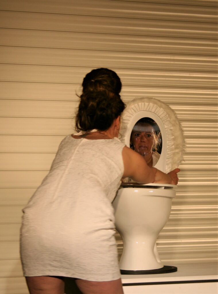 Wanda, timide maladive, se réfugie dans les toilettes pour fuir un monde qui la dépasse et où elle ne trouve pas sa place. Dans le seul endroit où elle se sent libre de s’exprimer, elle se confie à nous grâce au soutien d’Eugène, un WC auquel elle s’est beaucoup attachée au fil du temps. Touchée par sa condition, elle rêverait d’oser défendre sa cause pour démontrer la place essentielle tenue par les toilettes dans nos vies. Le spectacle s’est construit à partir d’une collecte d’anecdotes gênantes débutée en 2018. L’analyse des témoignages récoltés qui a révélé la thématique des toilettes comme centrale et commune à nos gênes respectives. Ainsi cette pièce vise aussi à apporter des informations documentées sur la question dans une volonté d’élégance et subtilité. Oser parler de ce qui nous met mal à l’aise à titre individuel ou collectif, est le premier pas vers un vivre ensemble de qualité. En relativisant sur nos échecs quotidiens, il est peut-être possible de recycler nos blessures d’orgueil pour en faire une force.